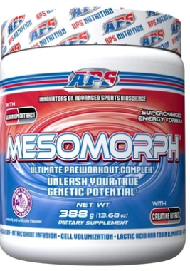 Mesomorph from APS (Advanced Sports Bioscience) is a pre-workout supplement designed to use before workouts to increase energy, performance and endurance. Mesomorph pre-workout contains several ingredients in the form of proprietary blends which do not disclose exact doses of ingredients. Therefore it’s hard to determine if ingredients are optimally dosed or not. The formula contains ingredients such as beta-alanine, citrulline malate and potentially harmful stimulants prohibited by many sports organizations. Treat this pre-workout with caution.